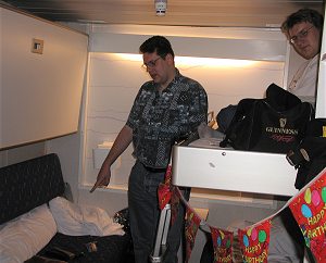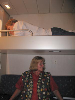 Op de boot. De hut viel heel erg mee. Op de heenweg tenminste... (Op de terugweg hadden we een ongerenoveerde hut.)